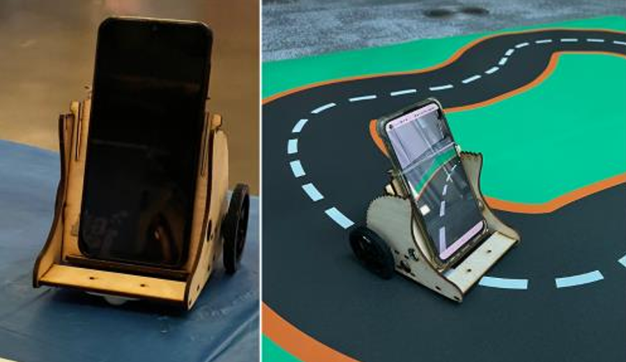 the core benefits of existing robotics platforms at a lower cost. It uses students’ smartphones as both